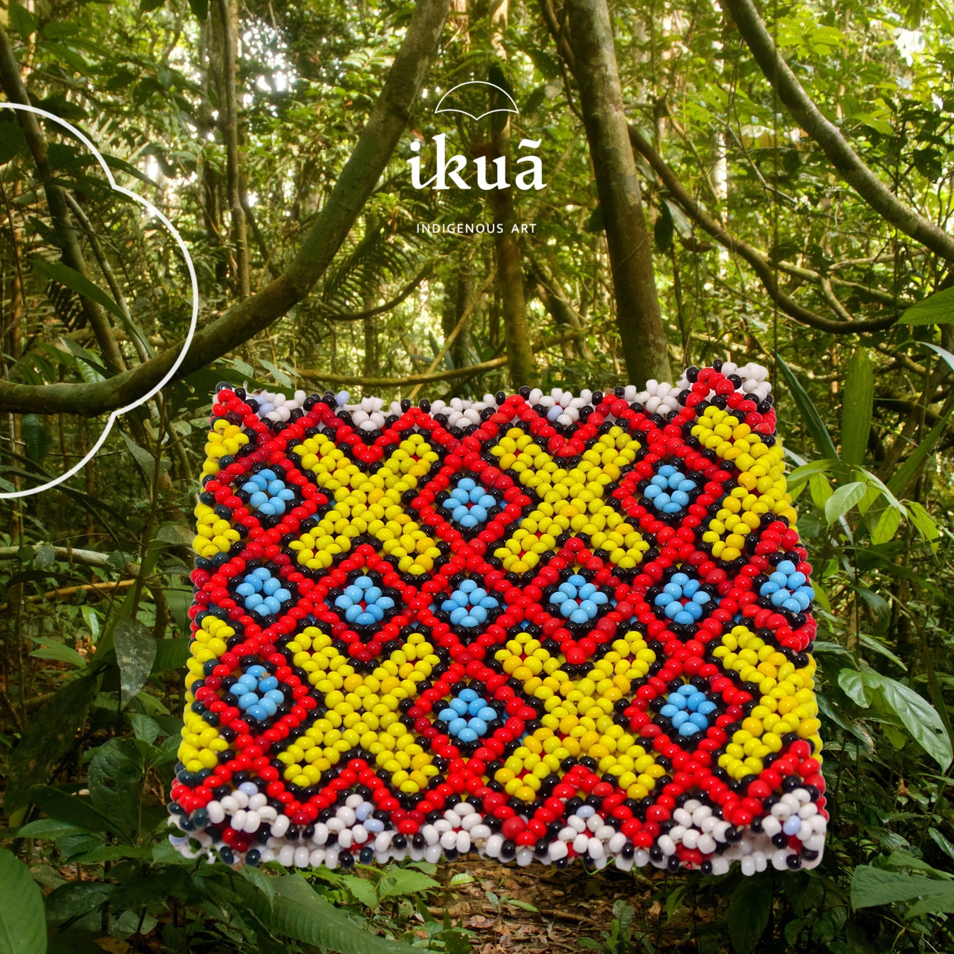 💚 Von den Huni Kuin traditionell handgefertigt 💚 Traditionelles Rautenmuster mit spiritueller Bedeutung 💚 Leuchtende Farben in Rot, Gelb, Blau und Weiß 💚 Maße: 8,5 × 7 cm