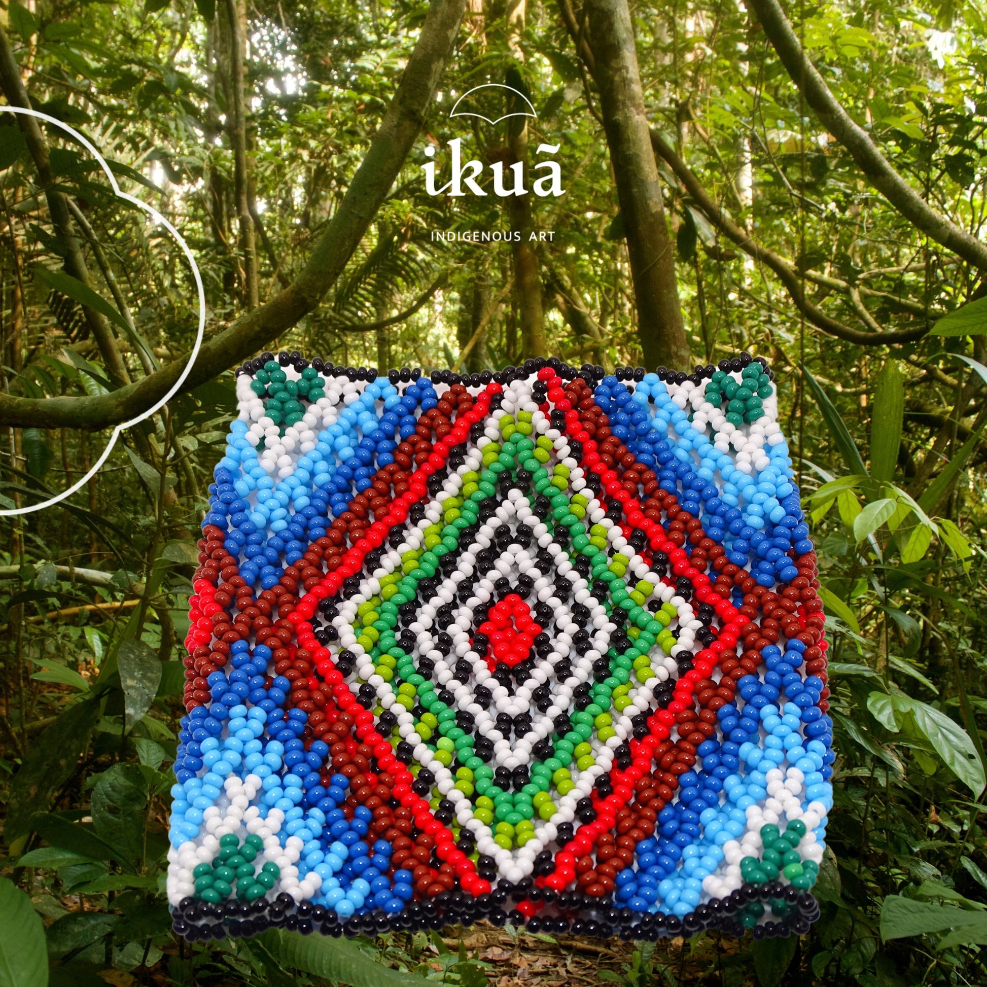 Entdecken Sie die spirituelle Schönheit dieses einzigartigen Perlenarmbands, handgefertigt vom indigenen Volk der Huni Kuin aus dem Herzen des Amazonas. Mit einer großzügigen Größe von 9 × 9 Zentimetern entfaltet sich ein faszinierendes Farbenspiel aus Rot, Blau, Weiß, Grün und Schwarz.
