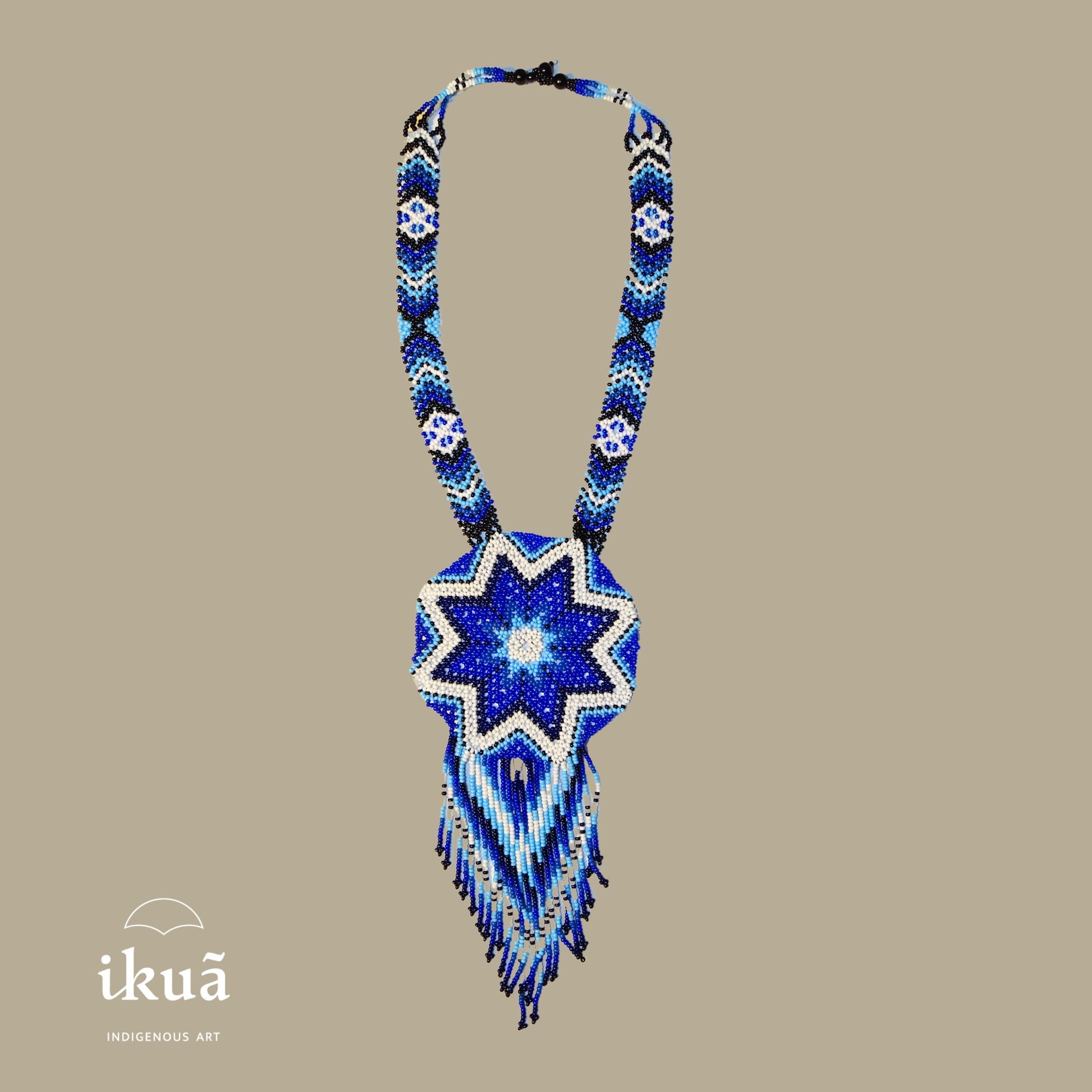 Finde deinen Weg im Licht deines inneren Sterns und trage die Weisheit des Nachthimmels an deinem Herzen. Diese elegante Perlenkette ist ein spirituelles Meisterwerk, handgefertigt von den Puyanawa in Brasilien, die den Kosmos und seine Geister in ihrer Kunst ehren.