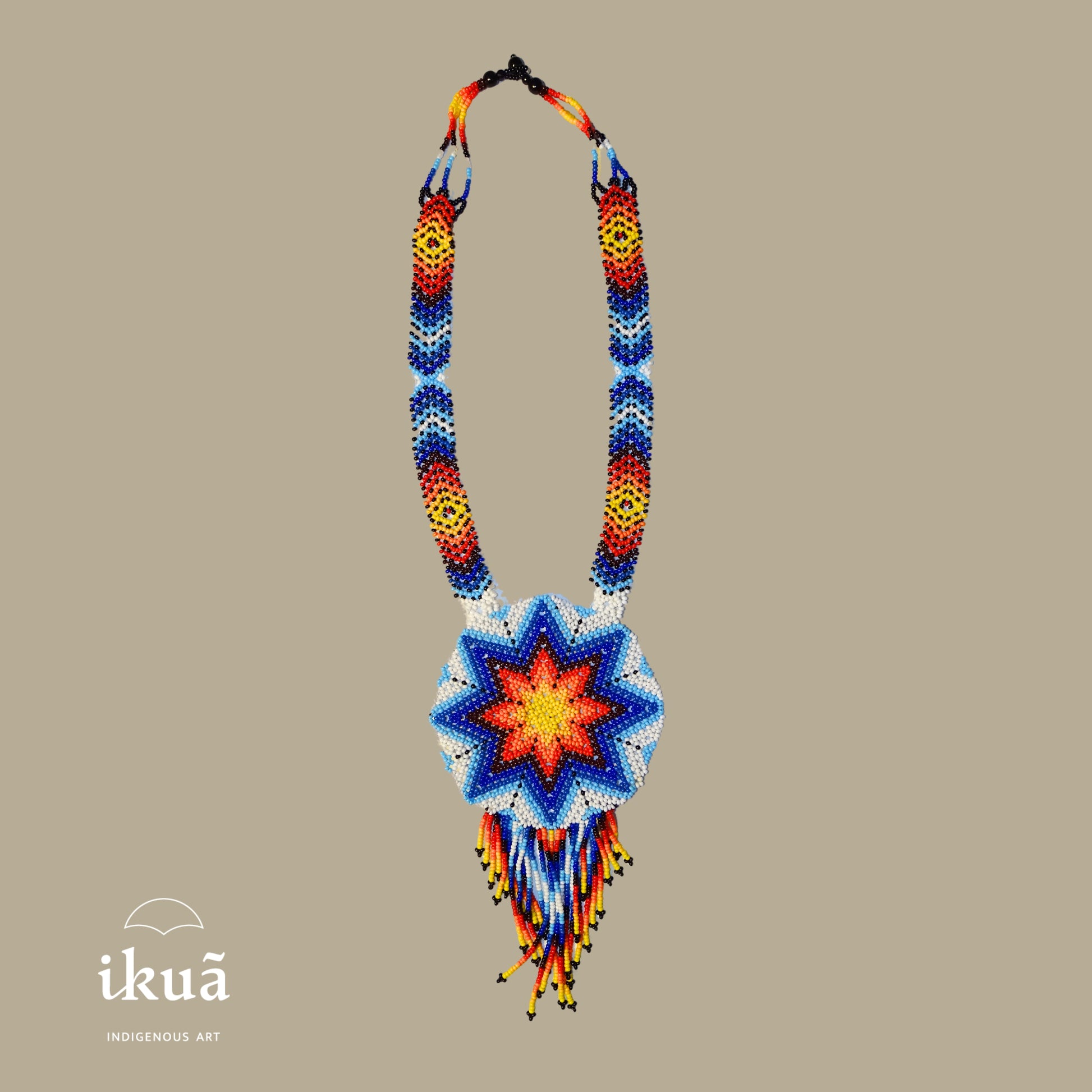 Finde die vollkommene Harmonie in dir und trage das Gleichgewicht der Elemente an deinem Herzen. Diese atemberaubende Perlenkette ist ein von den Puyanawa in Brasilien handgefertigtes Kunstwerk, das die Vereinigung kosmischer Kräfte symbolisiert.