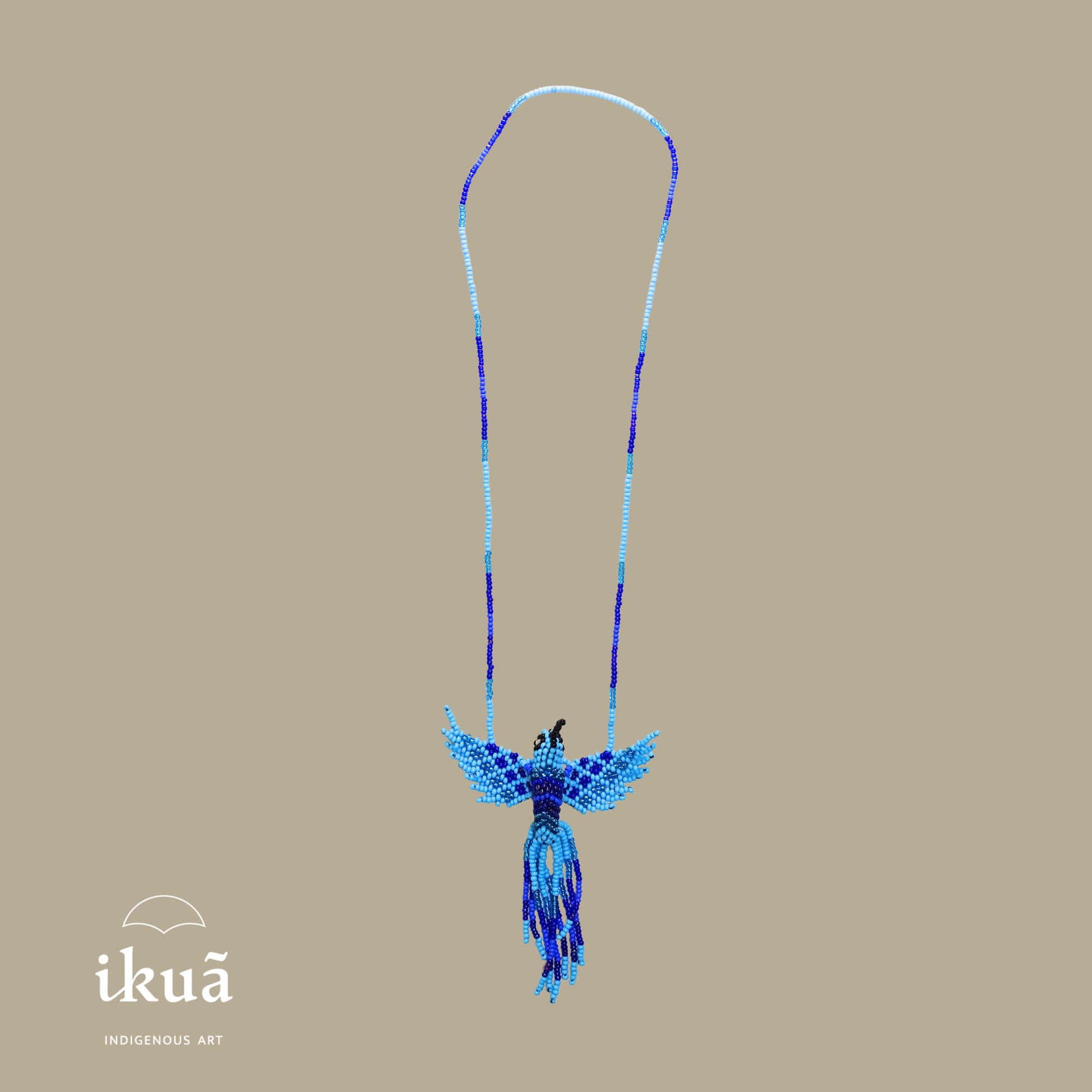🐦 Geist des Wassers: Der tiefblaue Kolibri (Beija-Flor) macht diese Statement Kette zu einem Symbol für Reinigung, emotionalen Fluss und inneren Frieden. Ein Meisterwerk der Huni Kuin Kunst.