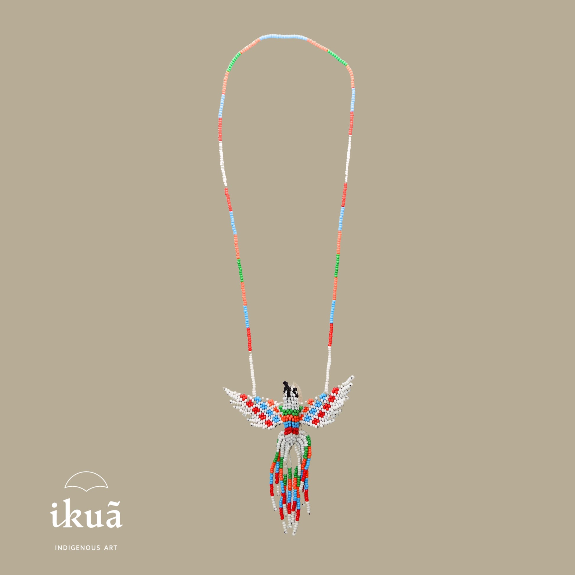 🐦 Bote des Friedens: Der weisse Kolibri (Beija-Flor) macht diese Statement Kette zu einem Symbol für Frieden, Sanftmut und spirituelle Reinheit. Ein Meisterwerk der Huni Kuin Kunst.