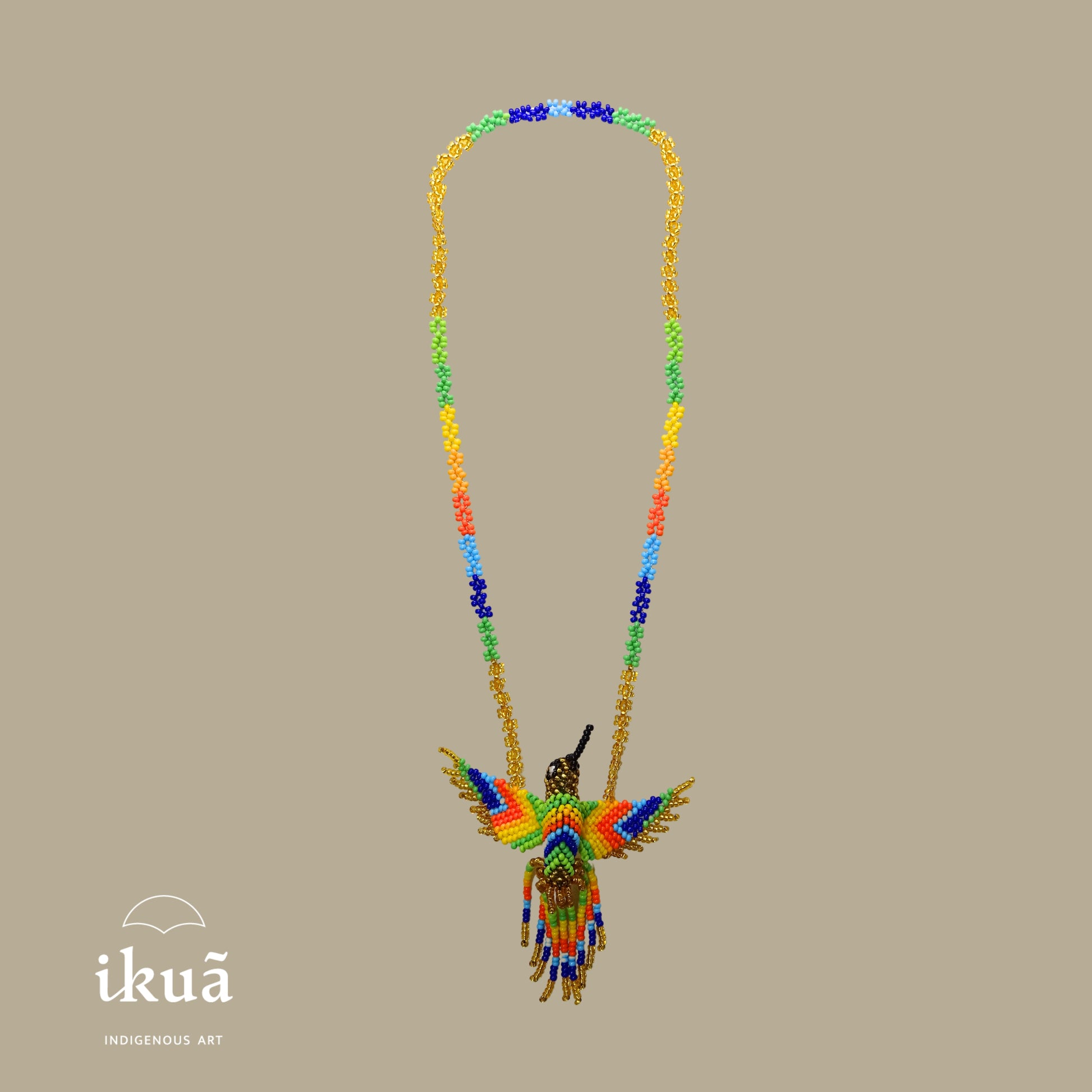 🐦 Geist des Lichts: Der majestätische Goldene Kolibri (Beija-Flor) macht diese Statement Kette zu einem Symbol für Erleuchtung und spirituellen Reichtum. Ein Meisterwerk der Huni Kuin Kunst.