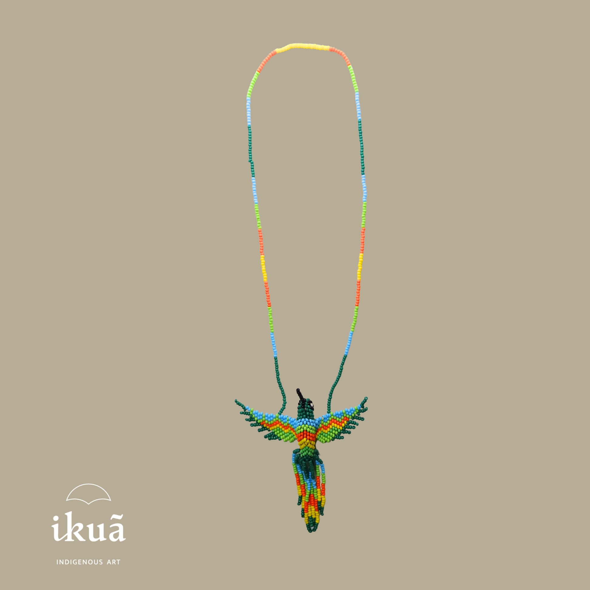 🐦 Der Lichtweber: Der farbenprächtige Kolibri (Beija-Flor) macht diese Statement Kette zu einem Symbol für Kreativität, Schöpfungskraft und Manifestation. Ein Meisterwerk der Huni Kuin Kunst.