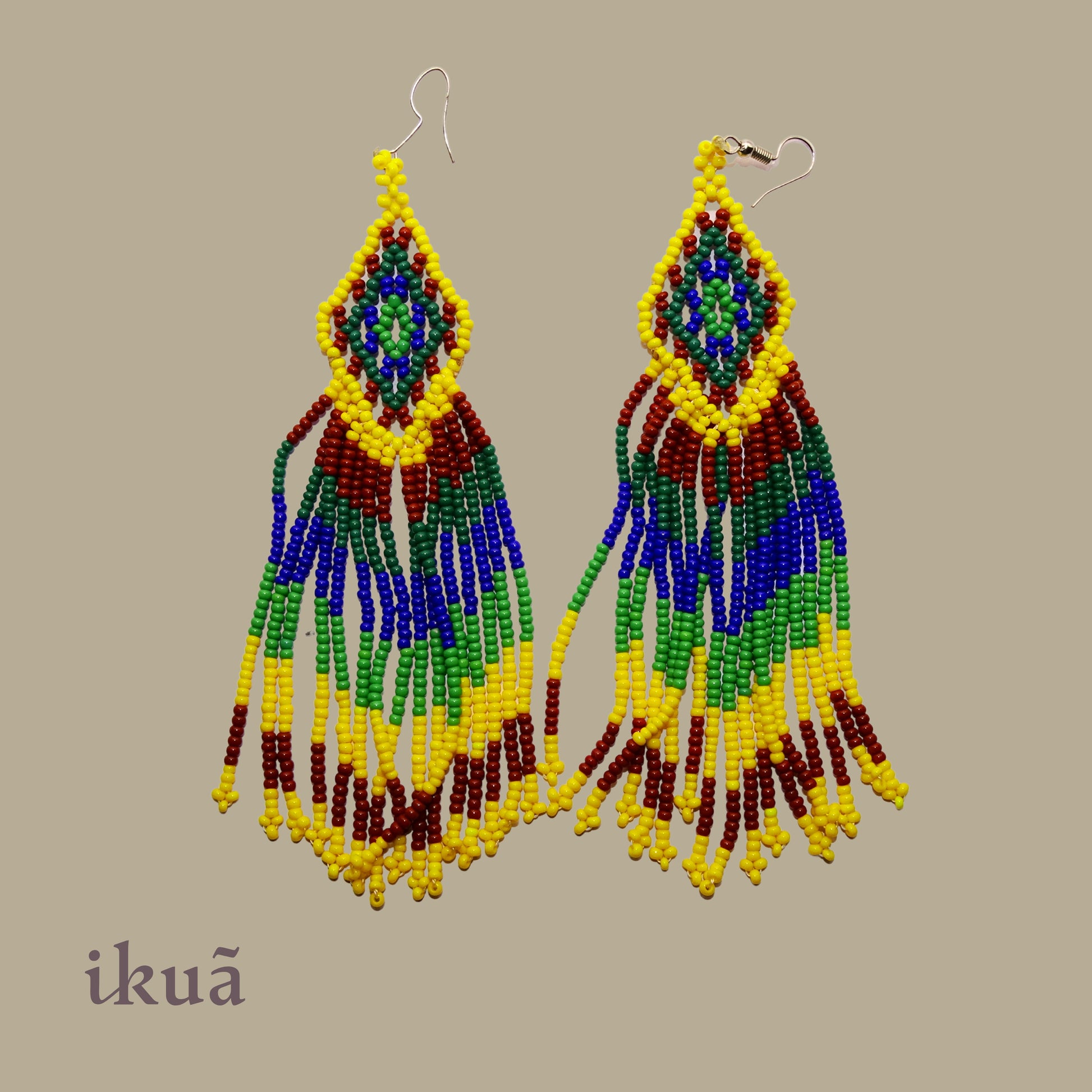 ✨ Gesang der Wahren Menschen: Echte Handarbeit aus Brasilien, gefertigt von den Huni Kuin. Jeder Ohrring ist ein materialisiertes Lied, das die Weisheit der "Wahren Menschen" in sich trägt.