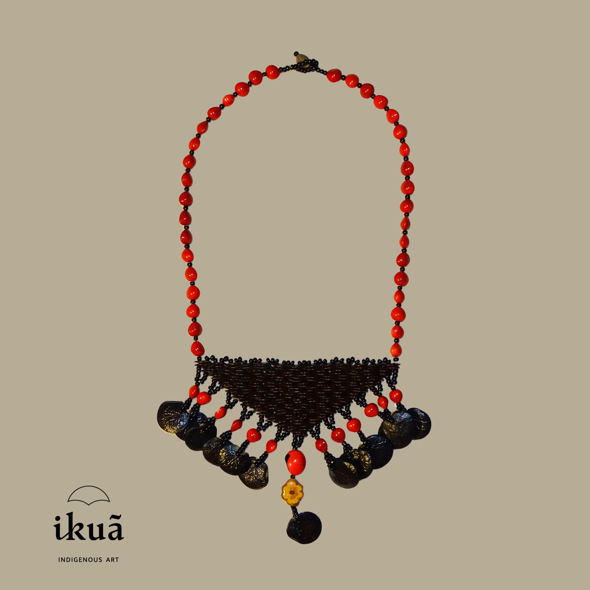 Dieses Collier ist ein machtvolles Schutz-Amulett, gewoben aus der Kraft des peruanischen Amazonas. Die Kette aus leuchtend roten Huayruro-Samen bildet einen Kreis des Glücks und wehrt negative Energien ab, während der dunkle Brustpanzer als spiritueller Schild dient. Im Zentrum jedoch hängt das Sonnenherz – ein leuchtendes Amulett, das die wärmende Energie der Sonne bündelt. Es ist der Fokuspunkt des Colliers, der nicht nur schützt, sondern auch die eigene innere Stärke und Lebensfreude nach aussen strahlen lässt.