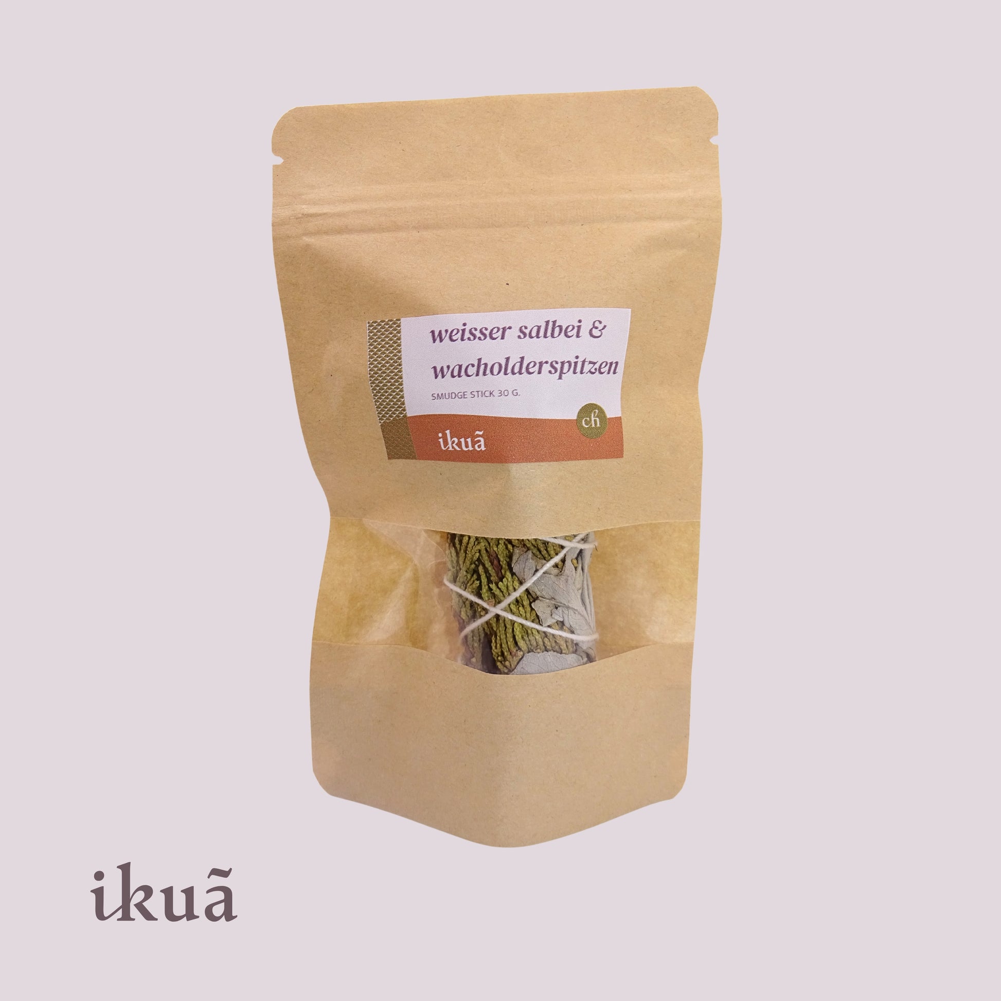 Erleben Sie die kraftvolle Allianz von Reinigung und Schutz mit diesem Smudge Stick, der den heiligen Weissen Salbei (Salvia apiana) mit den klärenden Wacholderspitzen vereint.